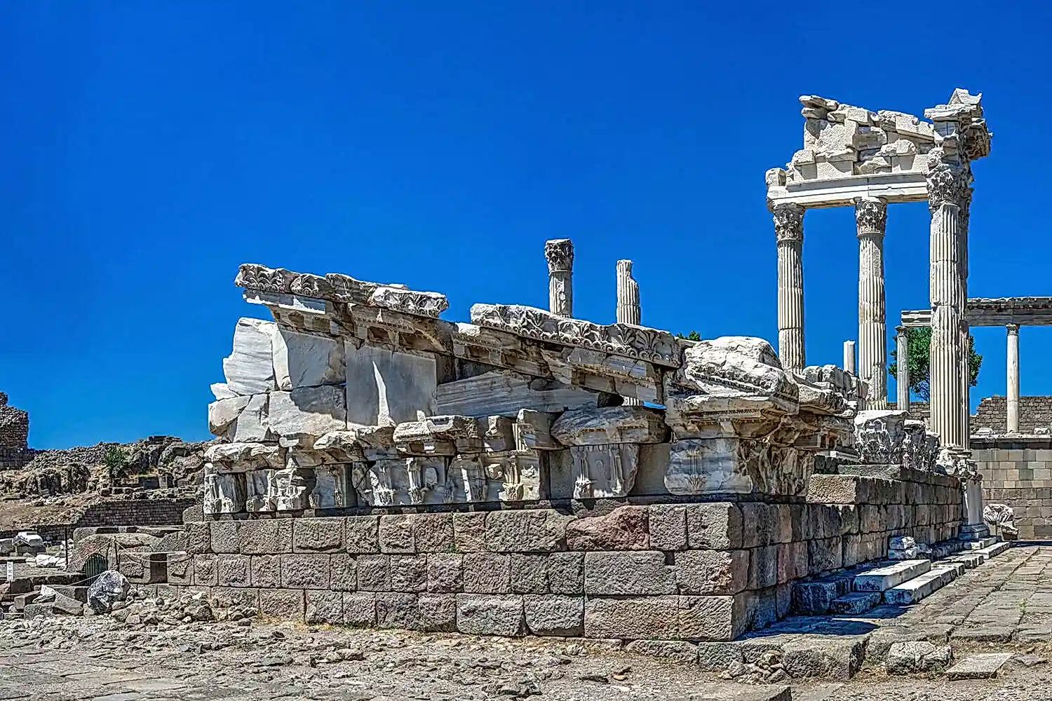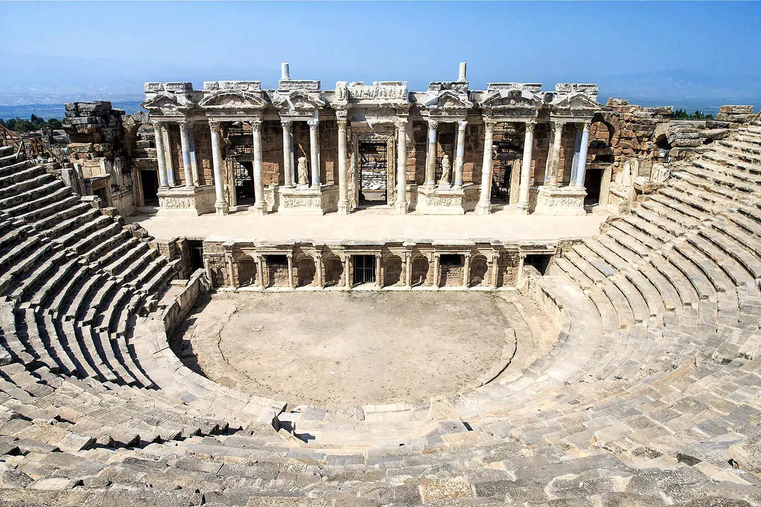 Morning Exploration: Pamukkale’s White Terraces: Step onto the enchanting white travertine terraces of Pamukkale, a UNESCO World Heritage Site. These unique formations, created by centuries of calcium-rich thermal waters, provide a magical walking experience. Feel the soothing warmth of the mineral-rich waters as you stroll barefoot across the terraces.Hierapolis Exploration: Discover the ancient city of Hierapolis, a fascinating historical site that dates back to the Hellenistic and Roman periods. Wander through its well-preserved ruins, including:Necropolis: One of the most extensive cemeteries of the ancient world, featuring intricately carved tombs and sarcophagi.Main Street and Gates: Walk along the ancient colonnaded streets and admire the grandeur of the monumental city gates.Thermal Baths: Explore the remains of the grand thermal baths, reflecting the city’s importance as a spa destination in antiquity.Midday Delight: Pause to enjoy a delicious open buffet lunch at a local Turkish restaurant. Savor a variety of traditional dishes while soaking in the tranquil surroundings and natural beauty of the area.